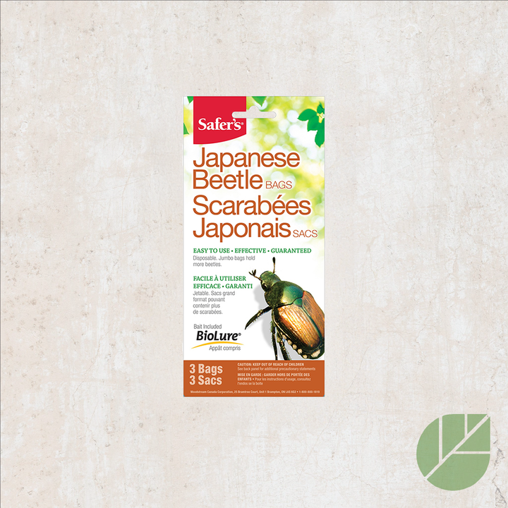 À utiliser avec le piège à scarabées japonais Safer’s®. Remplacer les sacs lorsqu’ils sont pleins ou selon le niveau d’activité des insectes, tout au long de la saison.