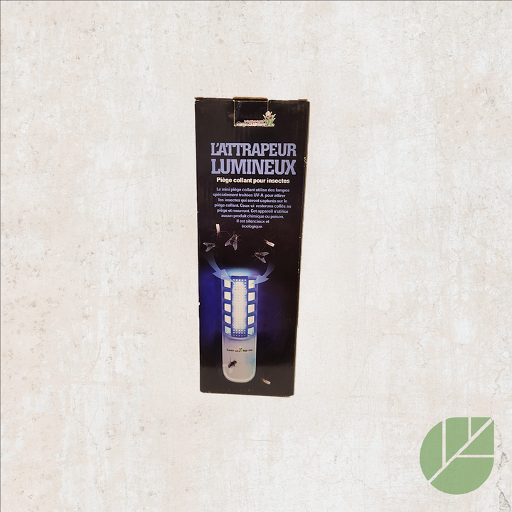 Piège lumineux à surface collante conçu pour attirer et capturer les insectes volants nuisibles à l’intérieur comme à l’extérieur. Grâce à sa lumière intégrée, il attire les mouches, moustiques, moucherons et autres petits insectes, qui se collent ensuite à la plaque adhésive sans possibilité de s’échapper. Discret, silencieux et sans produit chimique, il est idéal pour un usage domestique.