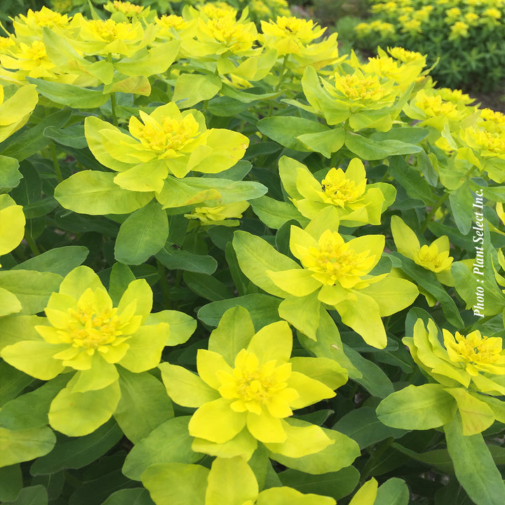 Elle forme un magnifique monticule de feuillage bleuté, couronné de fleurs jaune lime éclatantes, apportant couleur et contraste aux plates-bandes. Cette plante est non envahissante, contrairement à d'autres euphorbes vivaces. De plus, son ignorance par les lièvres et les cerfs en fait un choix judicieux pour le jardin.