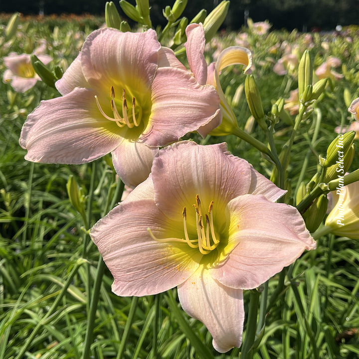 Diploïde et parfumée, caractérisée par ses grandes fleurs de 15 cm, d'un rose clair délicat, rehaussées d'un cœur jaune éclatant. Sa floraison tardive, en mi-saison, apporte une touche raffinée de couleur et de fragrance, parfaite pour prolonger la beauté et la douceur du jardin en fin d'été.