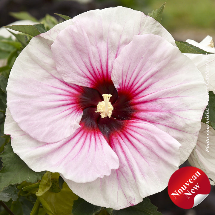 Avec ses spectaculaires fleurs de 20 cm de diamètre, blanches à œil framboise, cet hibiscus apporte un aspect tropical qui réchauffera vos étés. L'un des plus précoces du genre, il supporte bien les sols argileux et par conséquent les périodes d'humidité prolongées.