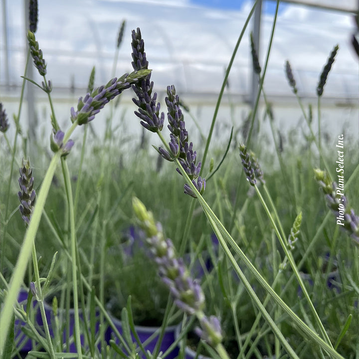Beau feuillage gris argenté d'où ressortent des hampes florales compactes, hautes et larges. Floraison un peu plus tardive que 'Hidcote Blue' ou 'Munstead'. Belles fleurs coupées.