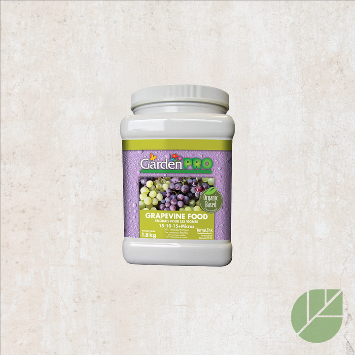 Grow grapes like a pro with Garden Pro 15-10-15 Granular Fertilizer . Its balanced formula, enriched with essential micronutrients, including boron , promotes optimal fruit set , improving cluster formation. Composed of natural phosphate and granular kelp , this organic fertilizer stimulates vine growth, while increasing the size, weight and sweetness of grapes . With 50% stabilized nitrogen , it ensures consistent long-term nutrition for superior yields.