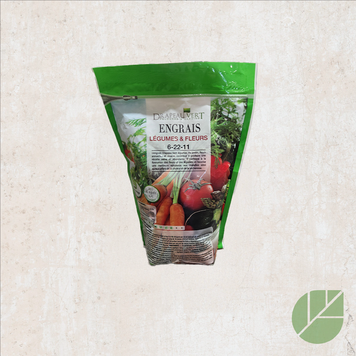 Green Flag Fertilizer 6-22-11 is a fertilizer specially formulated to promote strong rooting, abundant flowering and optimal vegetable production . Its high phosphorus content (22%) stimulates root development and flower formation, while nitrogen (6%) supports growth and potassium (11%) improves resistance to disease and climatic stress. Perfect for vegetable gardens, flower beds and flowerbeds.