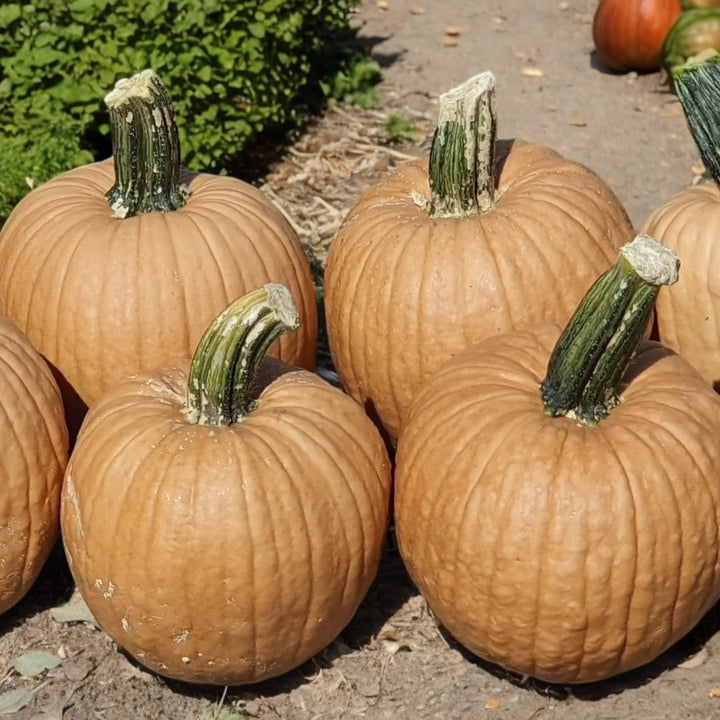 This pumpkin prefers a full sun location and rich, well-drained, slightly acidic to neutral soil (pH 6.0 to 7.0). Water regularly to maintain consistent moisture and fertilize sparingly to promote abundant, uniform production.