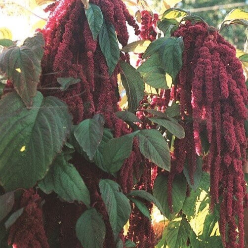 Amaranth 'Love-Lies-Bleeding' is a striking ornamental plant, prized for its long pendants of deep red flowers , which fall gracefully over light green foliage. With its vigorous growth and bushy habit, it reaches 60 to 90 cm in height , creating a spectacular effect in borders and attracting butterflies and pollinators throughout the summer.