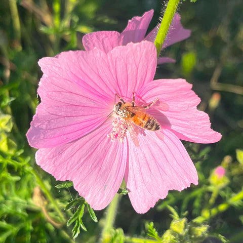 Musk mallow is a short-lived perennial that reseeds easily, ensuring its long-lasting presence in the garden. Producing delicate pink or white flowers throughout the summer , it adds a touch of softness and color to naturalistic gardens.