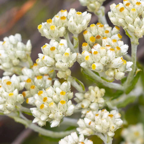 The Sweet Everlasting is an annual or biennial plant of the Asteraceae family, recognizable by its silvery foliage and woolly flowers reminiscent of small white buds with yellowish reflections. Its foliage and stems give off a sweet scent reminiscent of maple syrup , adding a unique olfactory touch to the garden.