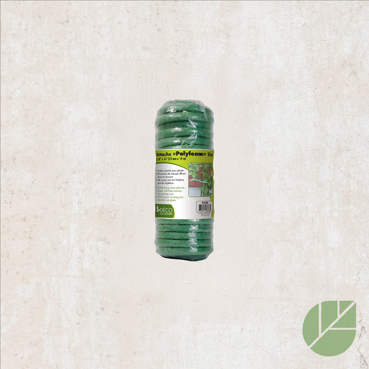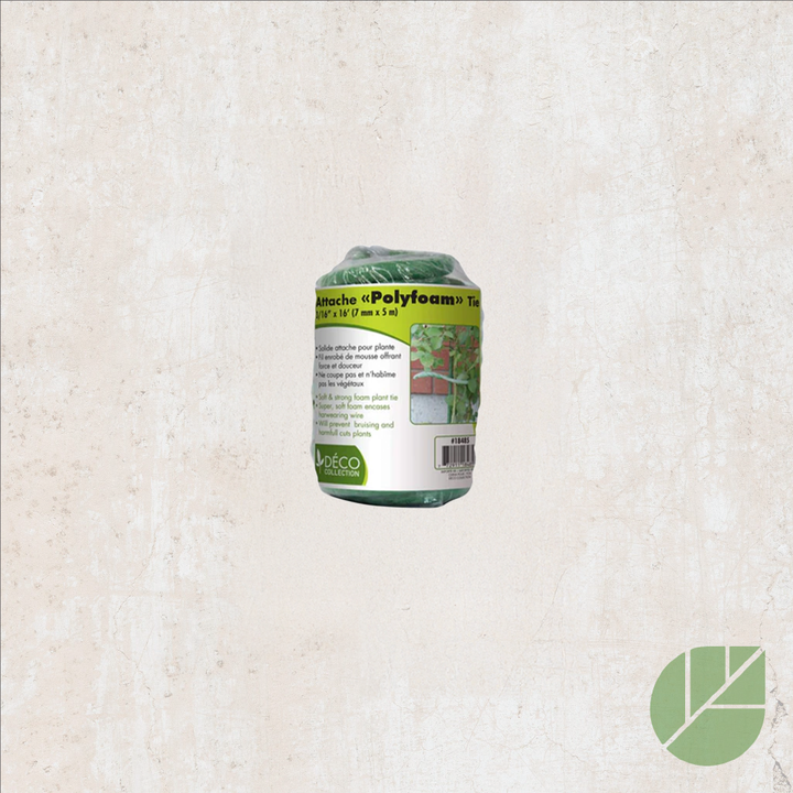 A flexible yet strong tie, the Polyfoam Tie is designed to hold plants securely without harming them. This 3/8 in x 164 ft (10 mm x 50 m) wire is covered with foam to prevent damage to delicate stems, while ensuring a strong, long-lasting hold.