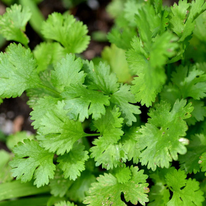 Cilantro 'Slowbolt' (Coriandrum sativum) is a heritage variety known for its slow-bolting nature and aromatic flavor. Reaching about 45 cm (1.5 feet) in height, this cilantro produces dark green leaves and white flowers. Its tangy flavor makes it ideal for spicy dishes, while its seeds are commonly used as a spice in Asian and Indian recipes.
