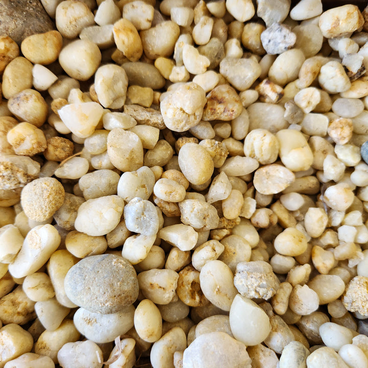 These fine, 5/16-inch gold pebbles offer a delicate texture and warm hue that instantly brighten your outdoor spaces. Their small size is ideal for paths, narrow flowerbeds, paver joints, or as mineral mulch around plants. Their natural golden color creates a neat and harmonious effect, while promoting drainage and reducing soil evaporation. An aesthetic and durable solution to enhance your landscaping projects.
