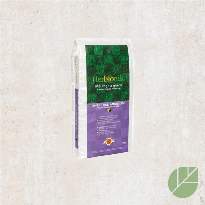 HERBIONIK's Minimum Maintenance – Sunny and Shaded lawn seed mix is ??specially designed to provide an ecological, resistant and low-maintenance lawn. Thanks to its premium ingredients, enriched with natural endophytes (present in ryegrass and fescue), this mix naturally repels leaf insects. Suitable for a variety of soils, even the poorest, and performing well on slopes, it guarantees a fine and dense lawn, resistant to diseases, insects, trampling and drought.
