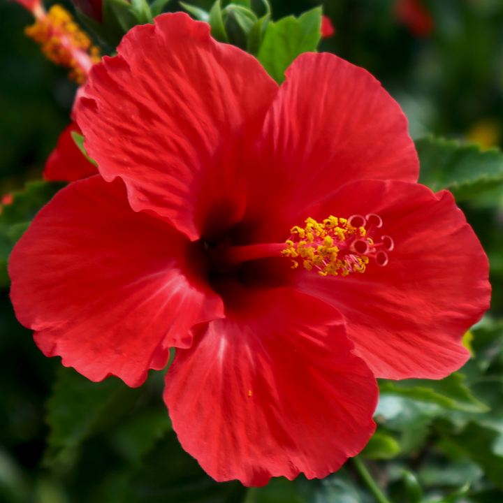 The Hibiscus rosa-sinensis on stem is a spectacular ornamental plant, known for its abundant flowering and its large, trumpet-shaped flowers with vibrant colors. Grafted on stem, this hibiscus adopts an elegant and structured silhouette, ideal for terraces, balconies, entrances or as a focal point in a tropical landscape. Offering continuous blooms from spring until the first frost, it is particularly appreciated for its ease of care, its exotic appeal and its ability to attract pollinators. Note that in Quebec, it must be grown in pots and brought indoors during the cold season. Not all perennials and tropical plants are available year-round: please call one of our branches or send us a request by email to check the available inventory.