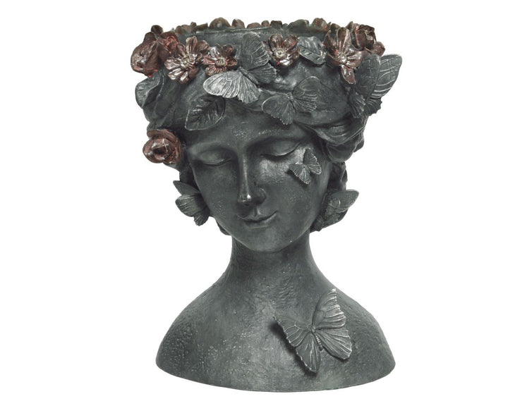 Resin flowerpot with female bust – antique green 30cm