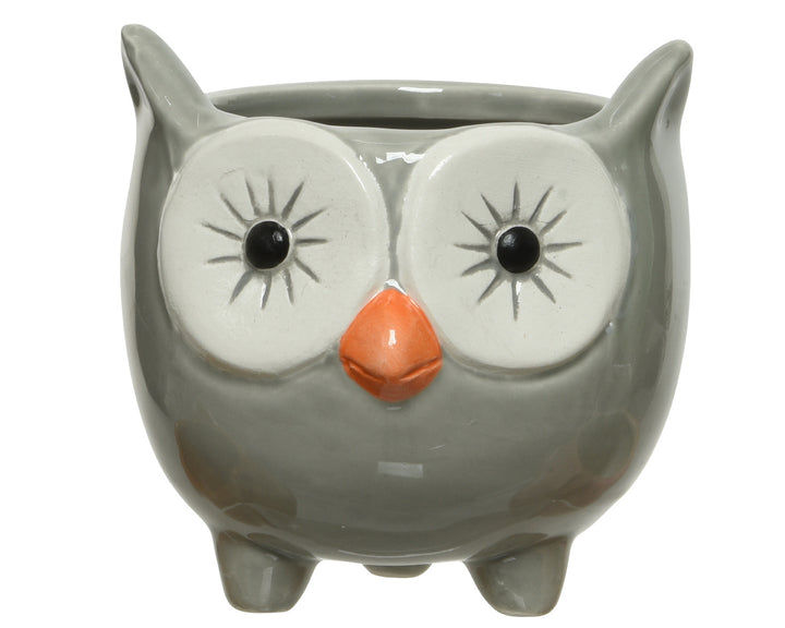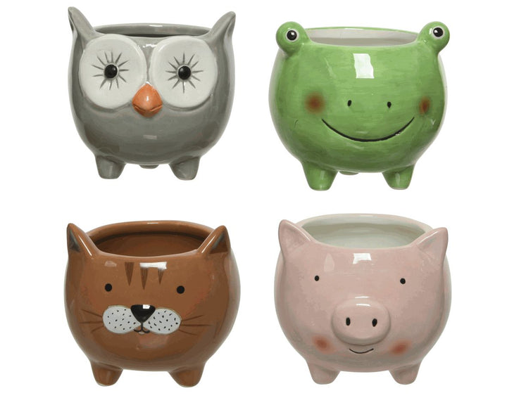 Dolomite planter with owl, frog, cat, pig motif - various colors