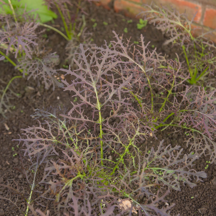 Scarlet Frills Mustard is ideal for successive sowings, from spring to autumn, which allows you to continually harvest tender and tangy leaves for your salads and cooked dishes. It is easily grown in full sun in well-drained soil, and is ideal for small gardens or smaller spaces. By planting the seeds about 1 cm deep, you can obtain beautiful harvests in just a few weeks.