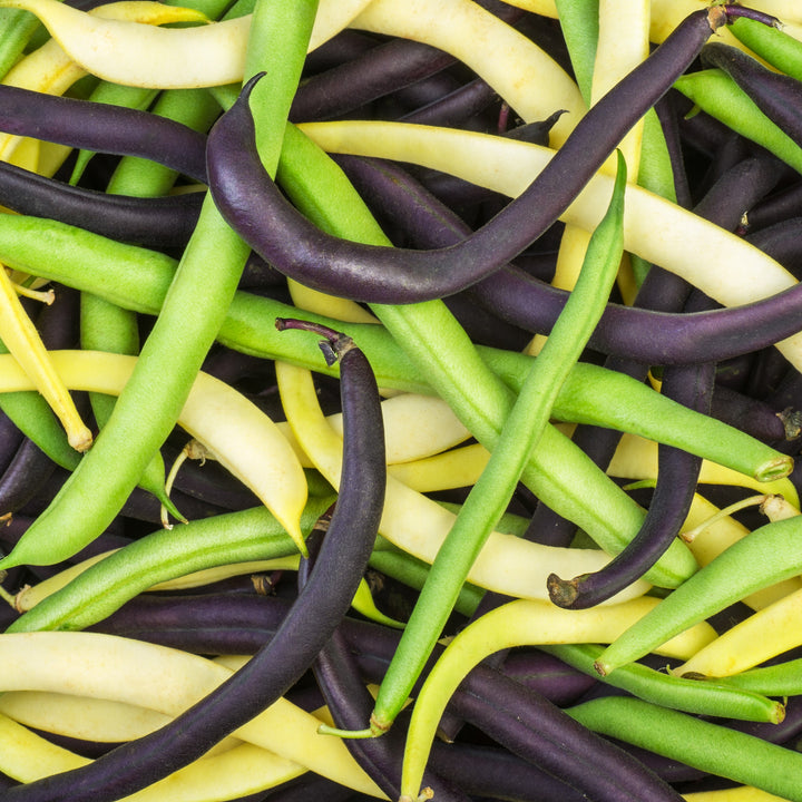 The 'Filet Mix' bean is a blend of three varieties of dwarf filet beans : Oceanis (green), Amarillo (yellow) and Velour (extra-fine purple) . Appreciated for their tender and crunchy texture , these thin, stringless pods measure 10 to 12 cm in length and offer a generous and continuous harvest throughout the summer.