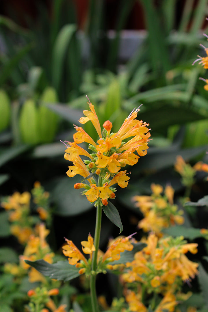 Plant with a dense, bushy habit. Pretty light orange flowers, clustered on spikes. Long flowering period. Much appreciated by hummingbirds and other pollinators.