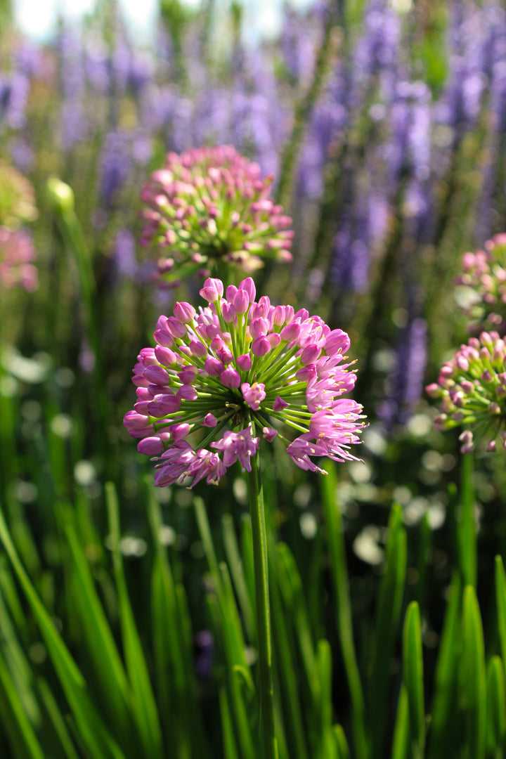 One of the best Allium varieties. Beautiful umbels on stocky plants, ignored by hares and deer. It does not reseed, which is an advantage over many garlic varieties. Plant it with bushy perennials such as catmint or geraniums to hide the yellowing foliage after flowering.