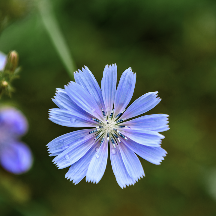 A biennial with pretty sky-blue flowers, chicory is equally at home in medicinal gardens and wild vegetable patches. Grown for its roasted roots or bitter young leaves, it also provides shelter for beneficial insects.