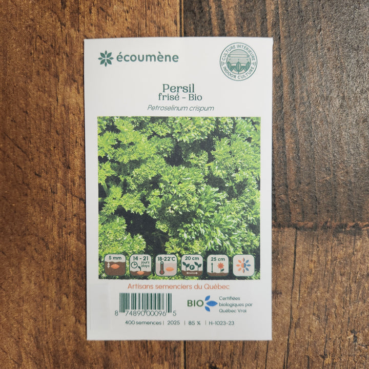 Curly Parsley (Petroselinum crispum) from the Jardins de l'Écoumène is a biennial plant highly prized for its delicately scented leaves and its ease of cultivation.