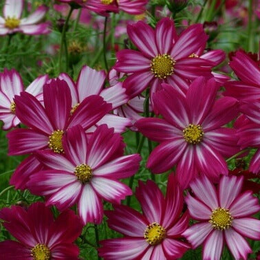 Purple-Red-White Cosmos are ideal for vibrant borders or stunning bouquets, while attracting pollinators to your garden.