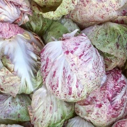 This Lusia-type variety forms a round head 30 to 40 cm high, with light green leaves delicately speckled with pink. Its sweet and crisp flavor, combined with a subtle bitterness that fades when cooked, makes it a versatile and popular ingredient in cooking.