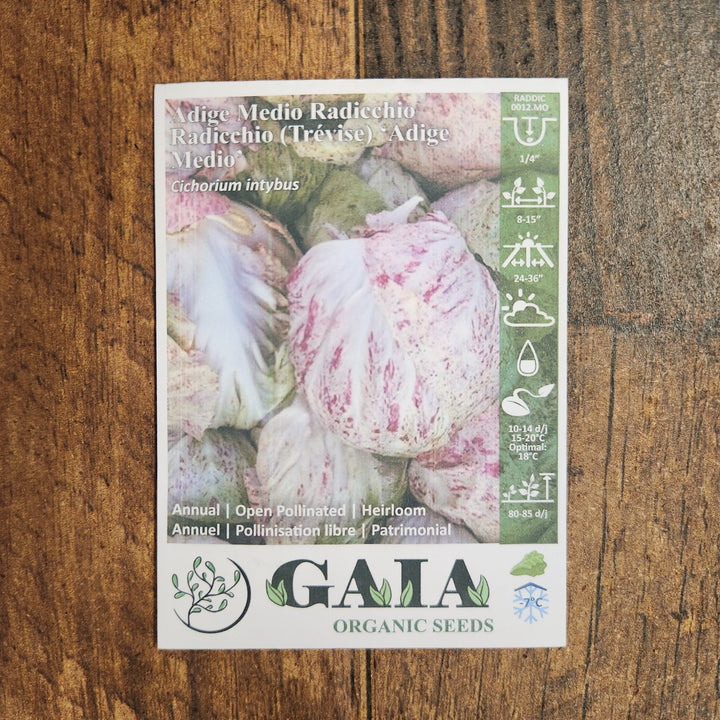 Radicchio (Treviso) 'Adige Medio' from the seed company Gaia is a refined annual plant, perfect for adding a touch of color and unique flavor to your garden and your plates.