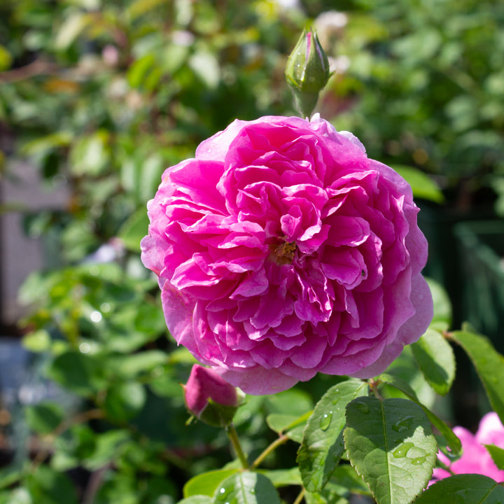 The English rose 'Harlow Carr' captivates with its perfectly formed, very double, medium pink flowers, with the charm of old-fashioned roses. Their powerful, pure fragrance evokes the Damask rose. It blooms continuously, from early summer until the first frost. The bush is dense, compact, and rounded, reaching approximately 90 to 110 cm, with very healthy dark green foliage. Highly disease-resistant, 'Harlow Carr' is ideal for borders, paths, and romantic-style gardens.