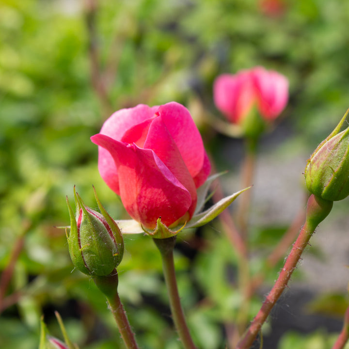 The 'Maxi Vita' rose bush stands out for its generous flowering and soft, luminous colors. Its clustered flowers open in shades of coral pink and peach, then fade slightly over time, creating a delicately nuanced effect. Flowering is continuous throughout the season, bringing softness and vitality to the garden. Not very fragrant, but very decorative, this rose bush forms a rounded bush of approximately 80 to 100 cm, with matte green foliage, resistant to disease. Easy to grow and very floriferous, 'Maxi Vita' is perfect for country beds, borders and group plantings.