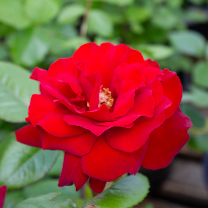 The 'Crimson Bouquet' rose is an impressive variety with large, ruby-red, semi-double to double flowers with slightly glossy petals. Their spectacular blooms continue throughout the season in dense clusters. Not very fragrant but very decorative, this rose forms a vigorous, upright bush reaching 120 to 150 cm, with very healthy dark green foliage. 'Crimson Bouquet' is perfect for structuring beds, creating a striking focal point, or forming magnificent flowering hedges.