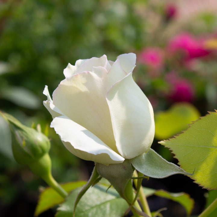 The climbing rose 'Eden Climber White' is a sleek and elegant take on the popular Eden, with large, creamy white, slightly ivory-colored rosettes of classic blooms. The fragrance is delicate and the abundant blooms return in waves throughout the season. Vigorous and structured, it climbs to 250-300 cm, perfect for a bright and sophisticated setting. 'Eden Climber White' is an elegant choice for a garden with soft hues.