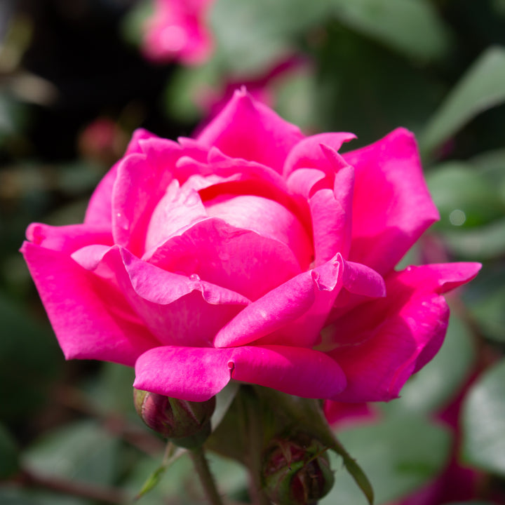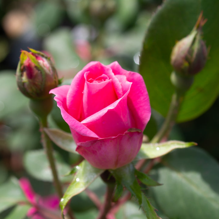 Ultra-resistant and floriferous, the 'Double Knock Out' rose (pink) is one of the most popular landscape roses for its low maintenance and exceptional flowering. It produces numerous double raspberry-pink flowers from spring until the first frost, without interruption or need for pruning to rebloom. Its bushy, compact and dense habit reaches 90 to 120 cm in height, with dark green, semi-glossy foliage, resistant to disease and yellowing. Very tolerant of heat, urban pollution and drought, it is the ideal rose for modern beds, low hedges or urban plantings. 'Double Knock Out' is a sure bet for a colorful, carefree and always blooming garden.