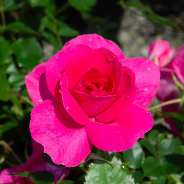 The hardy rose 'Felix Leclerc' produces large, slightly wavy, bright pink flowers in abundant clusters on a vigorous bush. A highly repeat-flowering and hardy rose, it can also be grown as a small climber. It reaches a height of approximately 150 to 180 cm. 'Felix Leclerc' is perfect for loose hedges or flower walls in cold climates.