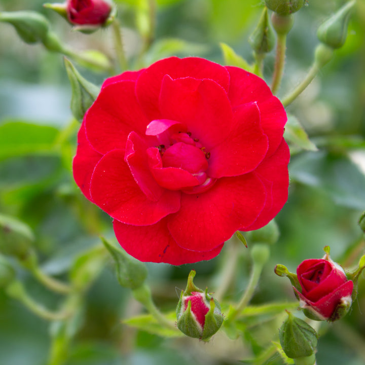Dynamic and ultra-compact, the hardy rose 'Flower Carpet Mini Cherry' seduces with its abundant flowering of small cherry-red flowers, grouped in dense and luminous clusters. With its stocky silhouette of 30 to 50 cm in height, this miniature ground cover is ideal for small spaces, borders, rockeries or flowering pots. Its continuous flowering from June until frost ensures a colorful and vibrant display all summer long. Very easy to care for, it does not require any special pruning, is resistant to drought once established and displays excellent disease tolerance. 'Mini Cherry' is the perfect choice for a colorful garden, effortlessly, even in small spaces.