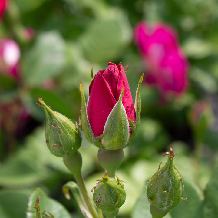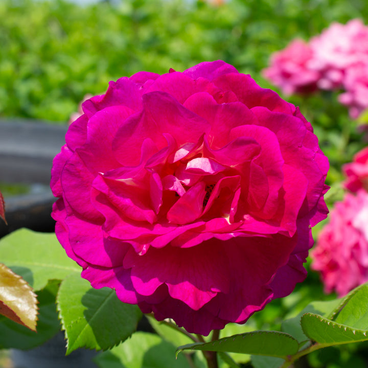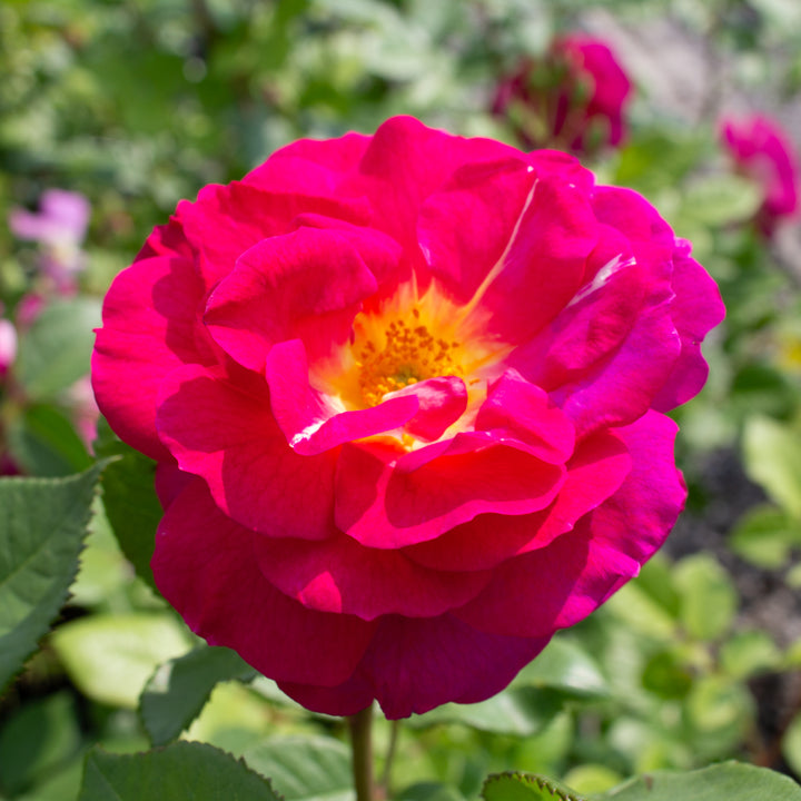Unexpected and ever-changing, the hardy rose 'Outta the Blue' intrigues with its double flowers in evolving shades, changing from purple-magenta to blue-violet, depending on the maturity of the flowers and the light. Lightly scented, it offers generous repeat flowering, from early summer until the first frosts. This rose forms a vigorous bush of 120 to 150 cm, with dense and healthy dark green foliage, very resistant to disease. Hardy and robust, it adapts well to Nordic gardens, colorful beds, free hedges or background plantings. 'Outta the Blue' is a bold choice for gardeners who want to think outside the box with a rare and evolving color, while maintaining great ease of cultivation.