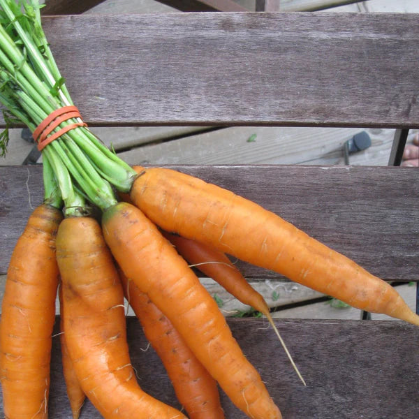 La Carotte ‘Scarlet Nantes’ est une variété classique et très appréciée pour sa racine cylindrique parfaitement droite, sa peau lisse, et sa chair rouge-orange intense. Réputée pour sa texture tendre, sucrée et juteuse, elle est idéale autant pour la consommation fraîche que pour la cuisson. Sa croissance est régulière, uniforme et elle résiste bien à la montaison, ce qui en fait l’une des carottes les plus stables et fiables pour les jardiniers de tous niveaux.