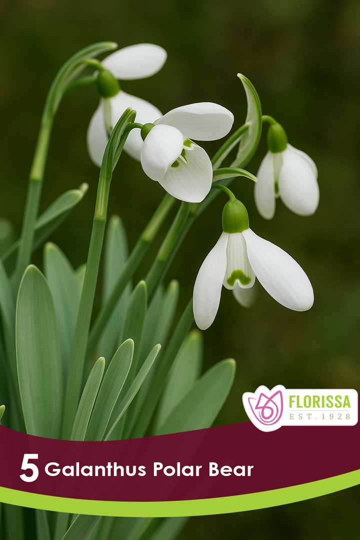 ?? Galanthus 'Polar Bear' (5 bulbs) – Immaculate flowering & winter elegance ? Offered by Van Noort