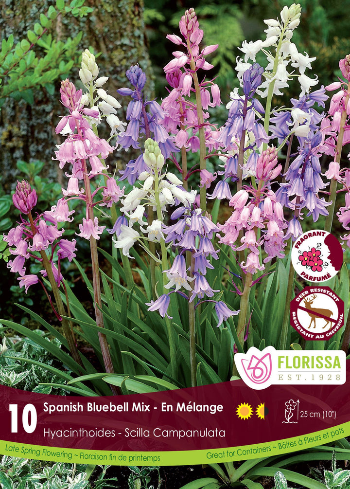 Bring an enchanted glade atmosphere to your garden with Scilla campanulata 'Mixed' , a bulbous perennial also known as bluebell . In spring, it produces clusters of dangling bells in shades of sky blue, soft pink and pure white , carried on slender stems erect above ribbon-like foliage. 🌸💙🤍