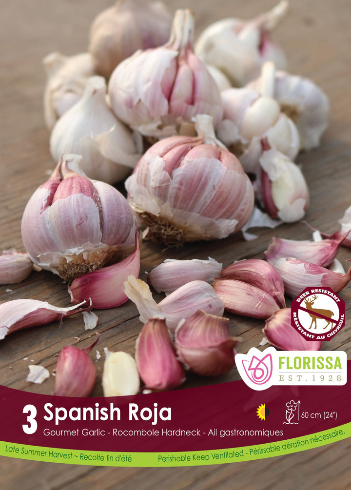 Spanish Roja Garlic is an iconic heirloom variety, cultivated for centuries for its rich, spicy aroma , visual beauty , and cold hardiness . It produces hard-necked bulbs of 6 to 9 plump , tightly coiled cloves covered in a deep coppery-red skin .