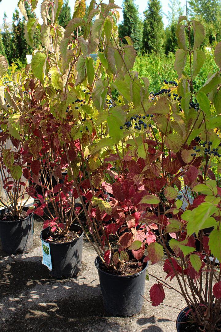 Viburnum dentatum is a native shrub with a bushy habit distinguished by its dark green serrated foliage, honey-producing white flowers in early summer, and blue-black berries favored by wildlife. It also offers an orange-red autumn color that enhances late-season plantings. Highly tolerant of a variety of conditions, including clay or poor soils, it is ideal for loose hedges, woodland edges, and low-maintenance gardens.