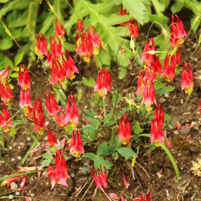 Wild columbine (Aquilegia canadensis) are graceful, colorful perennials ideal for rock gardens, rocky crevices, and dry environments. Their elegant red and yellow flowers attract hummingbirds and add a vibrant, natural touch to any landscape. Their light silhouette and unique blooms make them a perfect choice for a natural garden or trough garden.