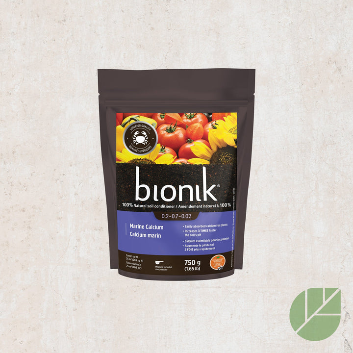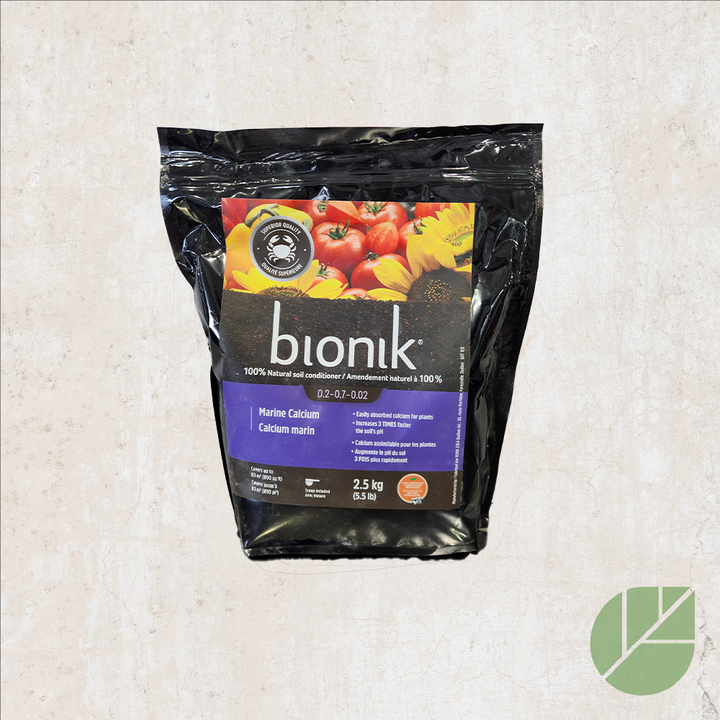 Bionik Calcium Marin est un amendement 100% naturel, riche en calcium assimilable pour les plantes. Formulé pour corriger l'acidité du sol, il augmente le pH trois fois plus rapidement que les amendements traditionnels, prévenant ainsi les carences en calcium. Idéal pour les plantes exigeantes telles que les tomates, brocolis et géraniums, ce produit favorise une croissance saine et réduit les risques de maladies, notamment sur les tomates. Bionik Calcium Marin est approuvé pour l'agriculture biologique par Québec Vrai et figure dans le manuel d'intrants biologique du MAPAQ. Non soluble dans l'eau, il doit être mélangé directement au sol pour une efficacité optimale.