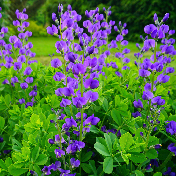 Le bleu indigo sauvage (Baptisia australis), proposé par Northern Wildflowers, est une vivace majestueuse et rustique, idéale pour les jardins naturalisés ou en permaculture. Ses fleurs bleu profond s’épanouissent de mai à juillet, offrant une touche élégante et unique au paysage. En tant que membre de la famille des légumineuses, cette plante fixe l'azote dans le sol, contribuant à la fertilité des jardins. Bien qu’elle prenne quelques années pour atteindre sa pleine maturité, elle forme alors un arbuste impressionnant et durable, tout en servant de plante hôte au papillon hespéride indigo sauvage.