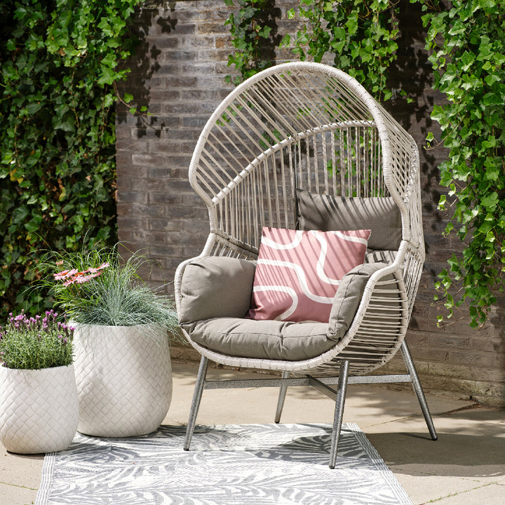 La chaise œuf Fermo se pare d’un élégant ton gris pour apporter une touche contemporaine à votre espace détente. Son enveloppe en rotin naturel, finement tressée à la main, dialogue harmonieusement avec le coussin gris anthracite, offrant un contraste subtil et raffiné. Le dossier haut et les côtés enveloppants créent une silhouette cocooning, tandis que l’ossature ajourée laisse passer la lumière et instaure une atmosphère légère. Idéale dans un salon, une véranda ou un balcon abrité, cette version grise s’intègre aussi bien dans un intérieur scandinave que bohème-chic. Sa conception robuste garantit longévité et stabilité, pour des moments de relaxation durables.