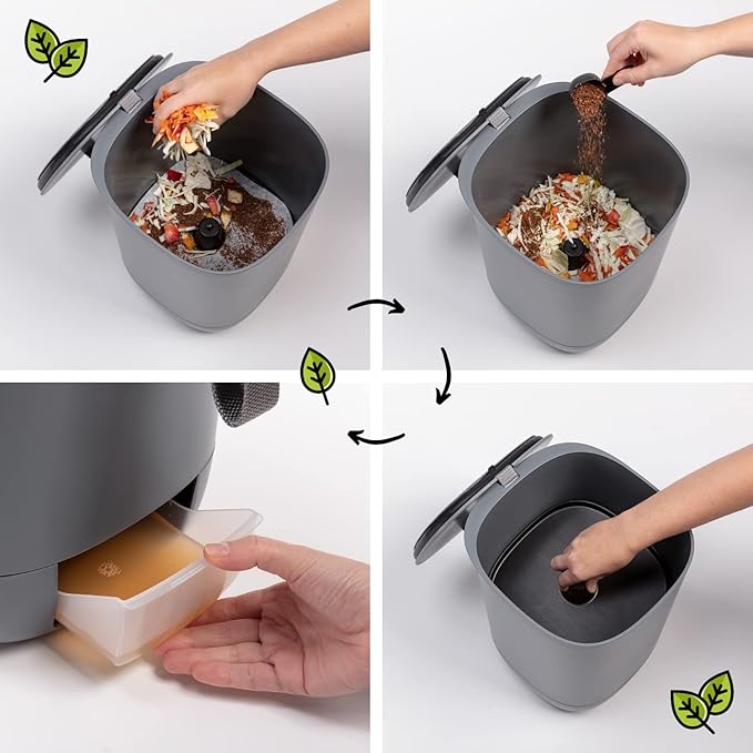 - Produit un compost riche et un fertilisant liquide naturel