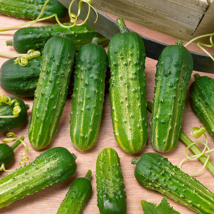 Les concombres préfèrent un sol limoneux riche, chaud et sableux. Travaillez le sol sur 30 cm avec du compost avant de planter. Formez des collines de 15–20 cm de hauteur, espacées de 120 cm. Plantez 6–8 graines par colline à 2 cm de profondeur. Éclaircissez à 3–4 plants après germination (7–10 jours). Pour maximiser l'espace et produire des fruits droits, cultivez sur treillis. Maintenez une humidité régulière pour éviter l'amertume des fruits, et récoltez délicatement avec un couteau bien aiguisé.