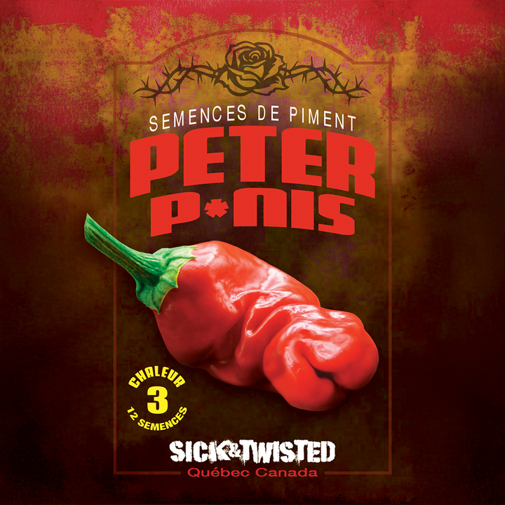 Le Peter P*nis est un piment ancien et unique, réputé pour sa forme phallique surprenante. Ses origines exactes restent floues, mais il serait originaire du Texas ou de la Louisiane. D’abord cultivé comme plante ornementale, il a rapidement gagné en popularité auprès des amateurs de piments et des jardiniers en quête d’originalité. Avec une chaleur modérée atteignant 50 000 SHU, il n’est pas qu’un simple objet de curiosité : il offre aussi une saveur fruitée et épicée, parfaite en cuisine.