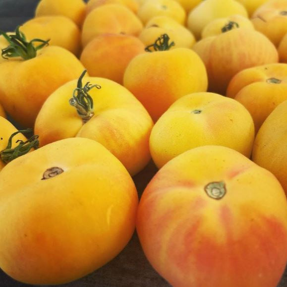 Tomate 'Garden Peach' bio (Solanum lycopersicum) du semencier Gaia, une tomate au charme velouté et à la saveur délicate