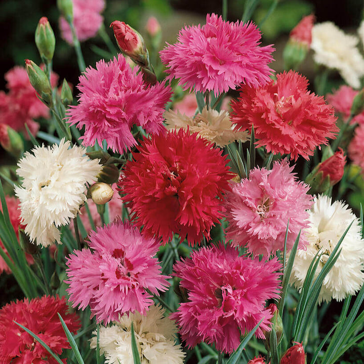 Ajoutez une touche d'élégance et de nostalgie à votre jardin avec l'Œillet de Chine 'Chinensis Double Mix'. Cette fleur patrimoniale produit des fleurs doubles et délicatement parfumées dans des tons de rose, rouge et blanc. Idéal pour les parterres ou les jardinières, il offre une floraison prolongée sur des plantes compactes atteignant 40 cm de hauteur.